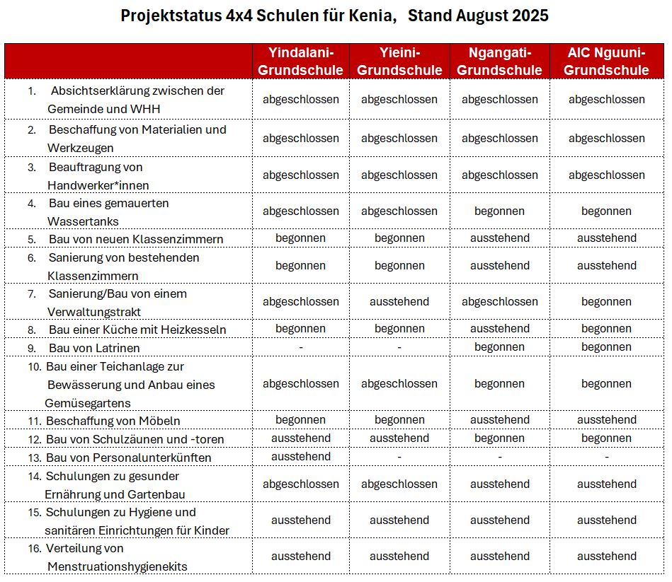 Dies sind die einzelnen Schulen aus 4x4 Schulen für Kenia: